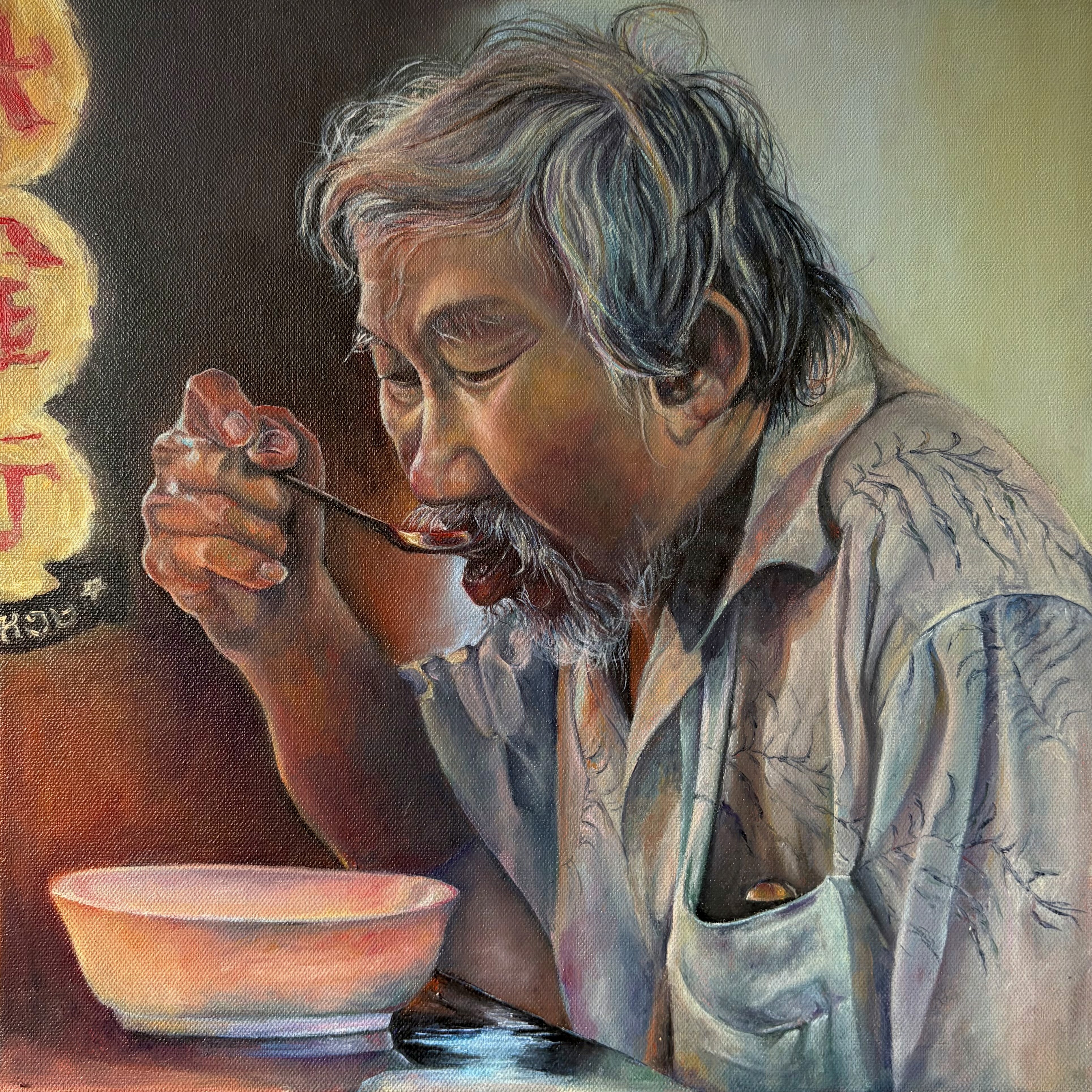 I explore oil painting with a refined realism that invites deeper reflectionWhat is special about your technique? Why this medium?