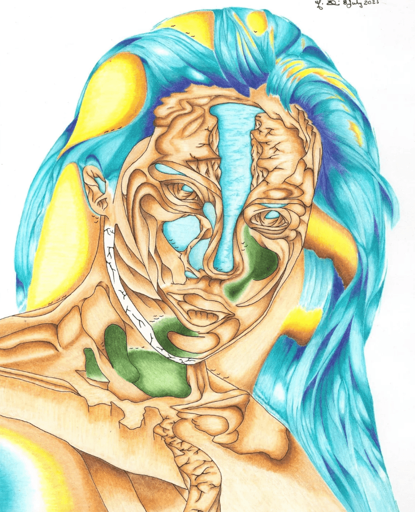 It is not conventional technique. I use colored pencils, ink, graphite and thinner. I get the results I am looking for at this moment. All this evolving.If someone were searching for your work on Google, what keywords do you think they would type?