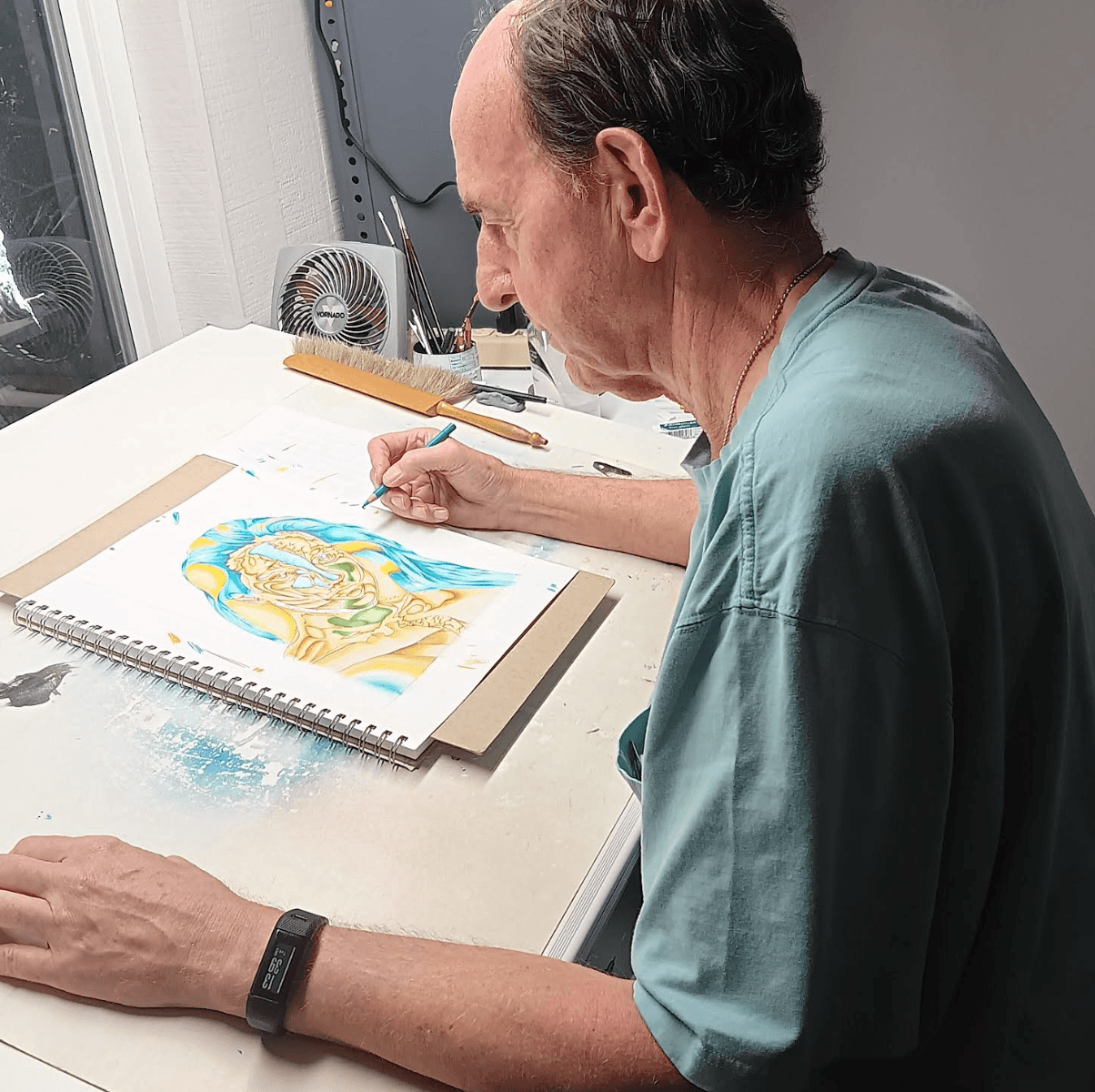 Selected as a finalist in Curatone.art's Moments of Life (2025) competition, Norm Ellis creates dreamscapes using mixed media: airbrush, ink, acrylics, and Prismacolor. His philosophy is simple but profound: to create visual communication that words alone cannot express.